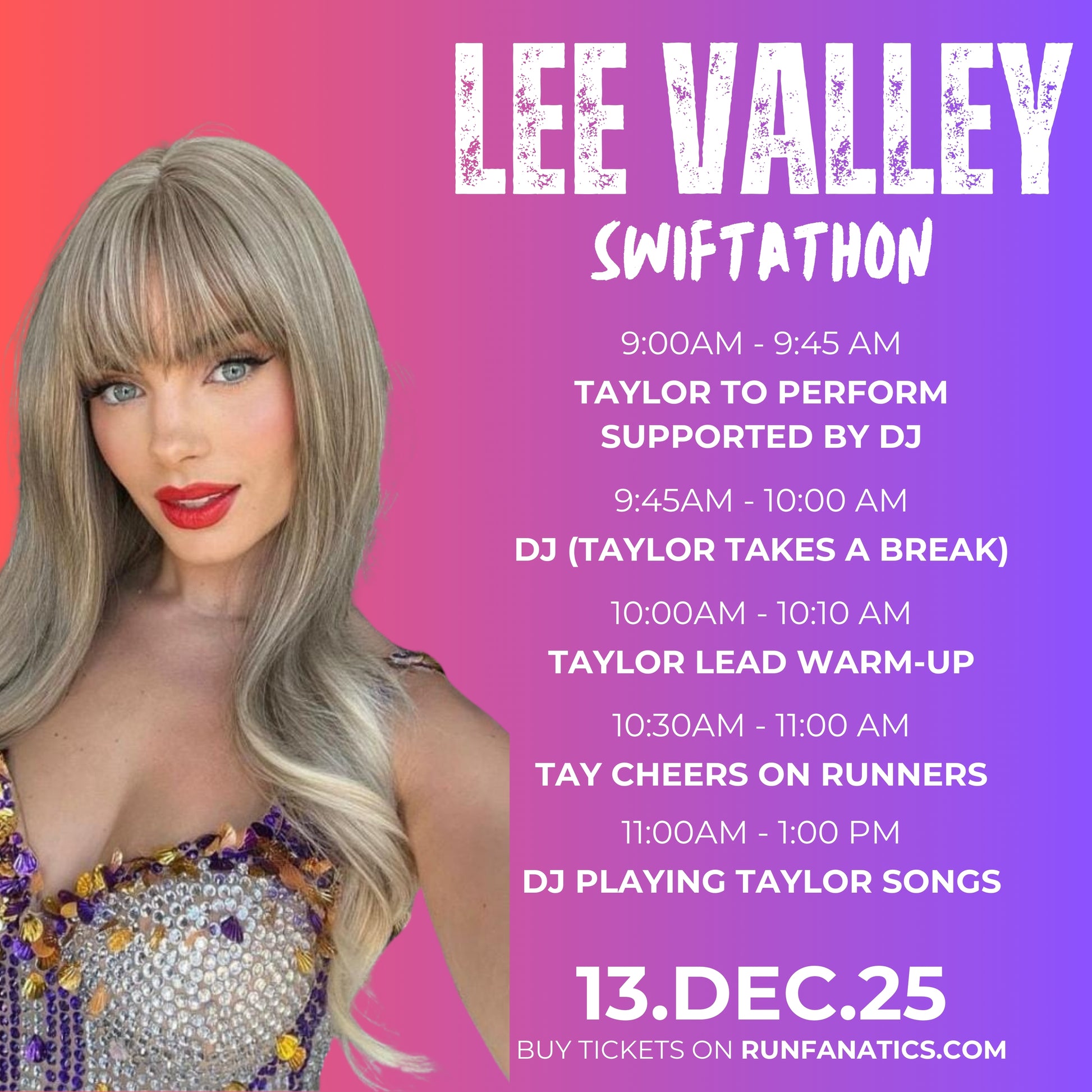 💃 Taylor Lookalike Performance & Warm-Up – Taylor will be performing for at least 45 mins prior to the start up the race!